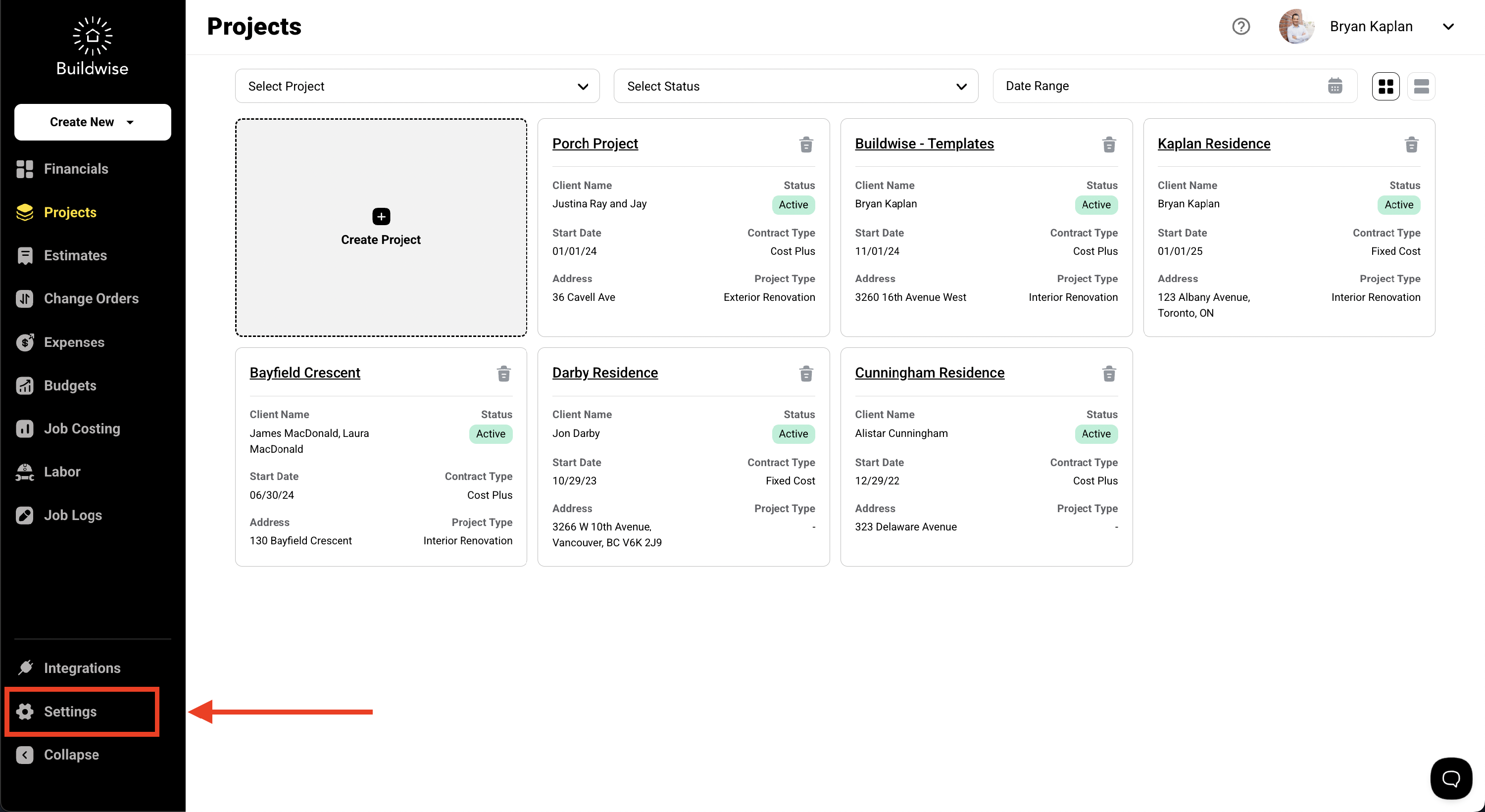 If you'd like to export a set of the cost codes from your Buildwise account, simply navigate to the Company Settings page.
