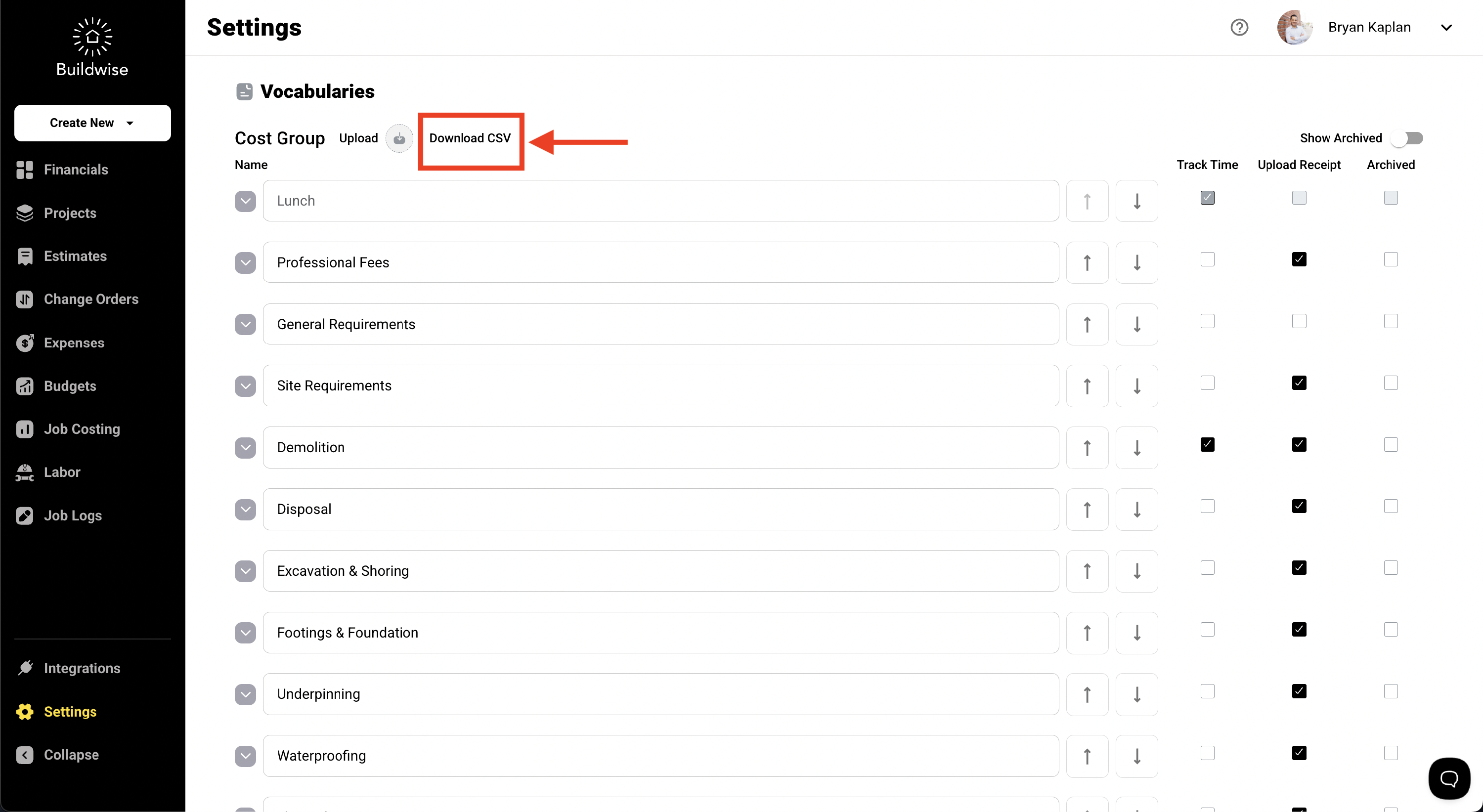 Give the system a moment and your CSV cost codes will populate in your Downloads folder.